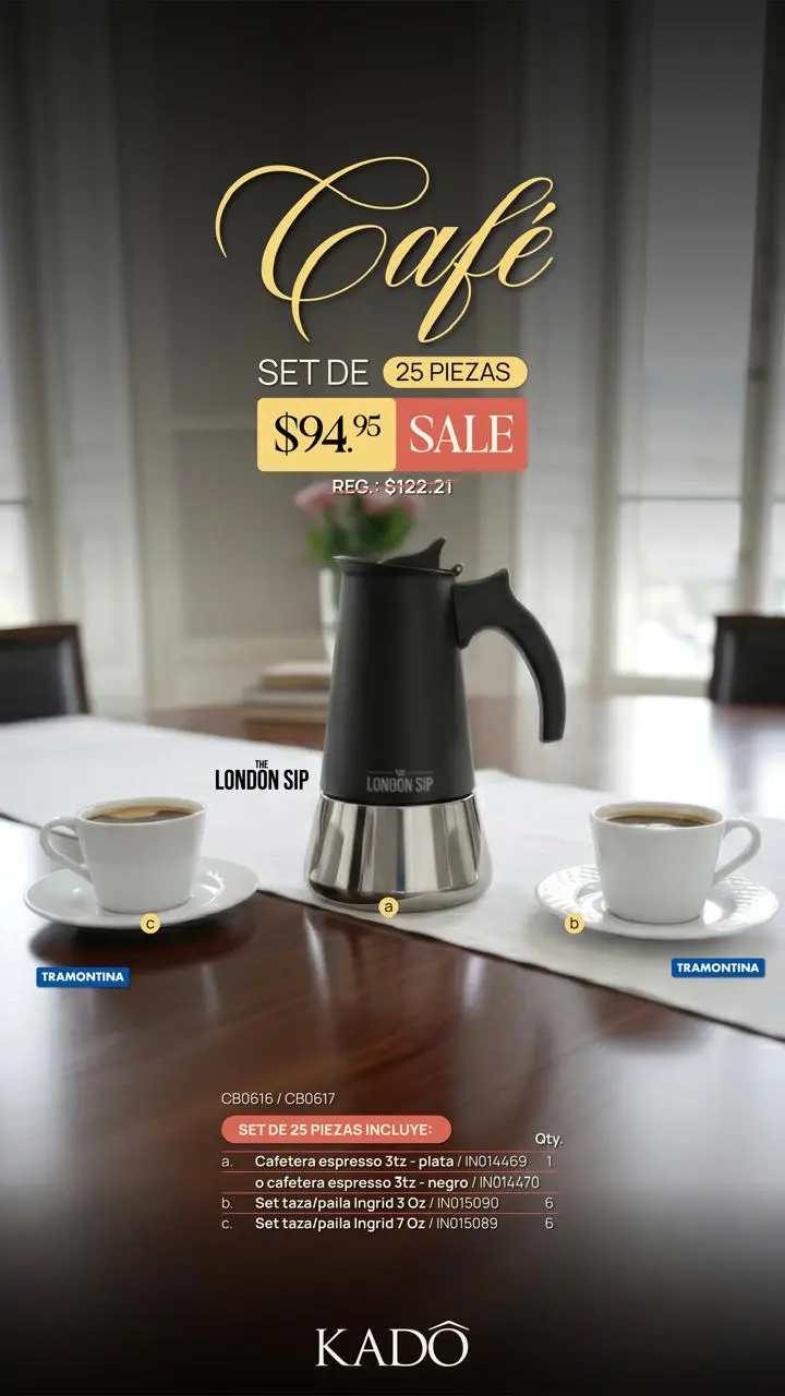 SET PARA CAFÉ DE 25 PIEZAS CAFETERA PLATA